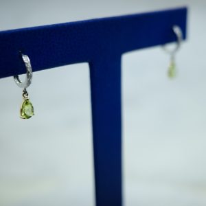Peridot dangle earrings in 14kt white gold with diamonds (0.88 ctw).