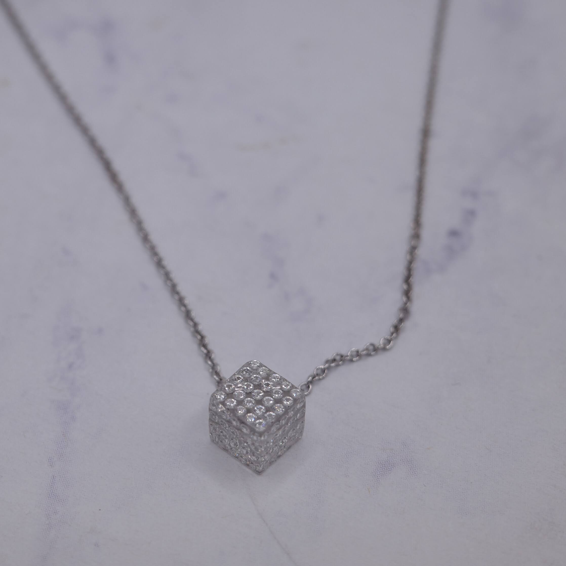 14kt white gold 0.41ctw Solare cube pendant. Made in the United States. Please see additional information below.