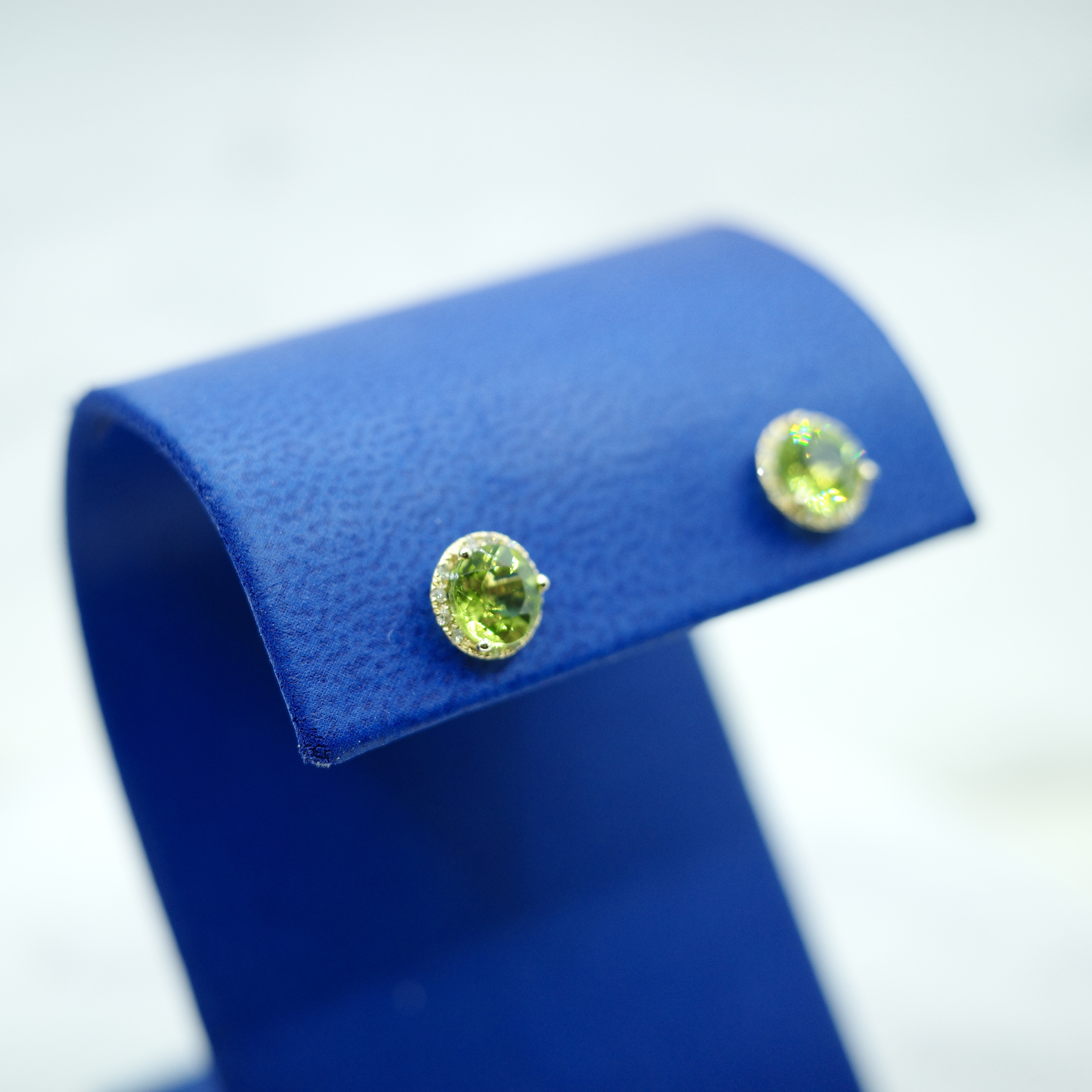 14kt yellow gold peridot (2.05 ctw) stud earrings with diamond rounds in setting. Please see below for additional information.