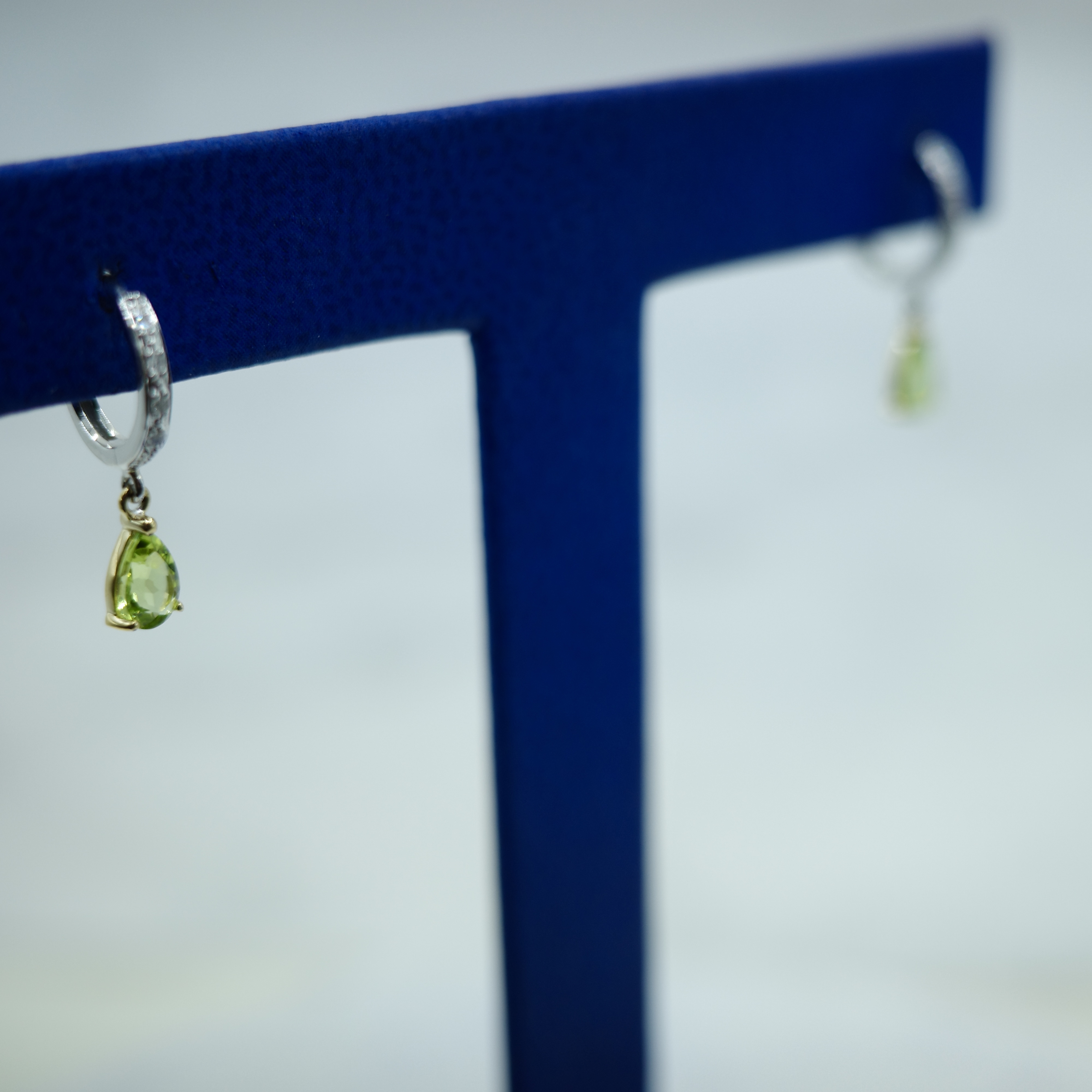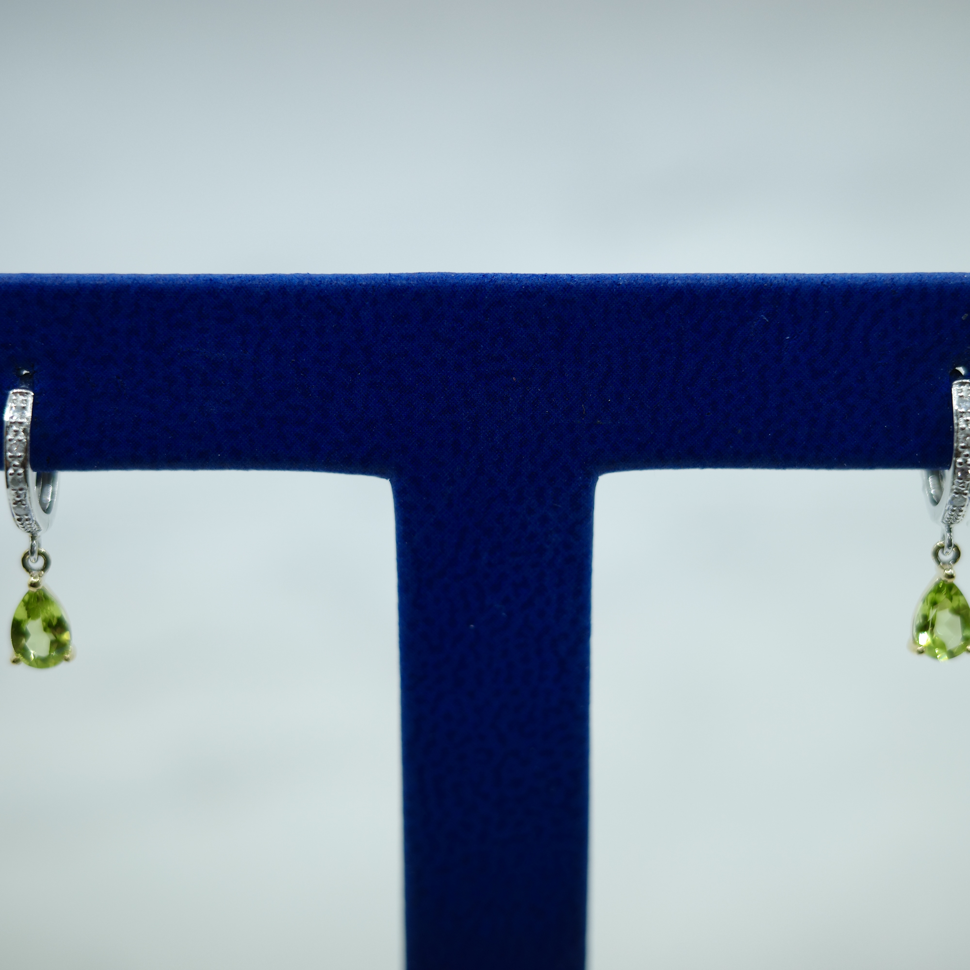Peridot dangle earrings in 14kt white gold with diamonds (0.88 ctw). Please see below for additional information.