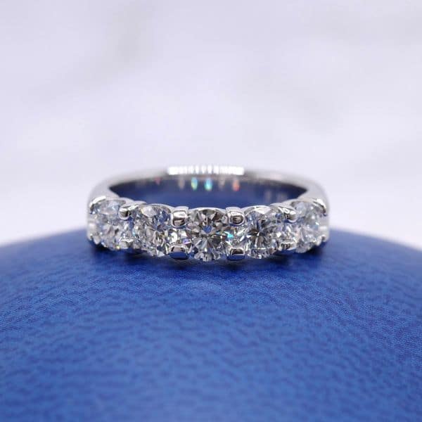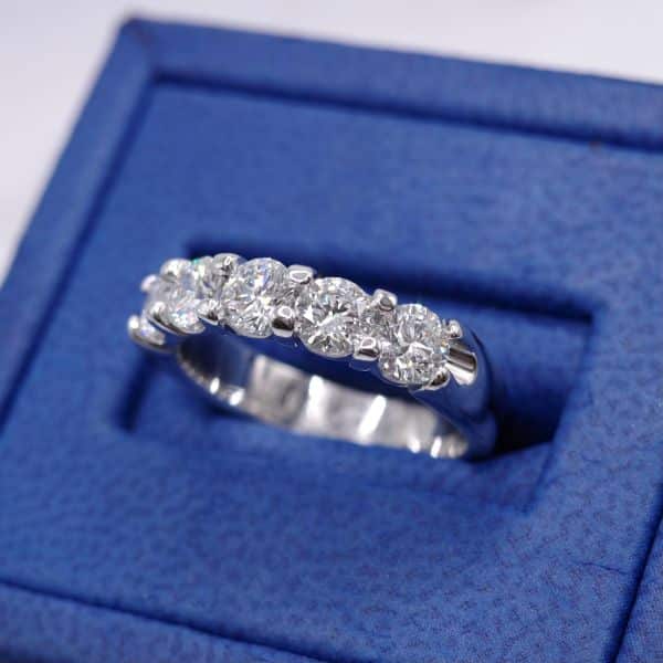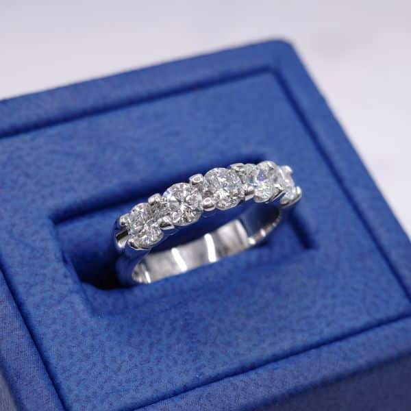 This platinum wedding band features 5 Full-Cut Diamonds totaling 1.26ctw. Please see additional information.