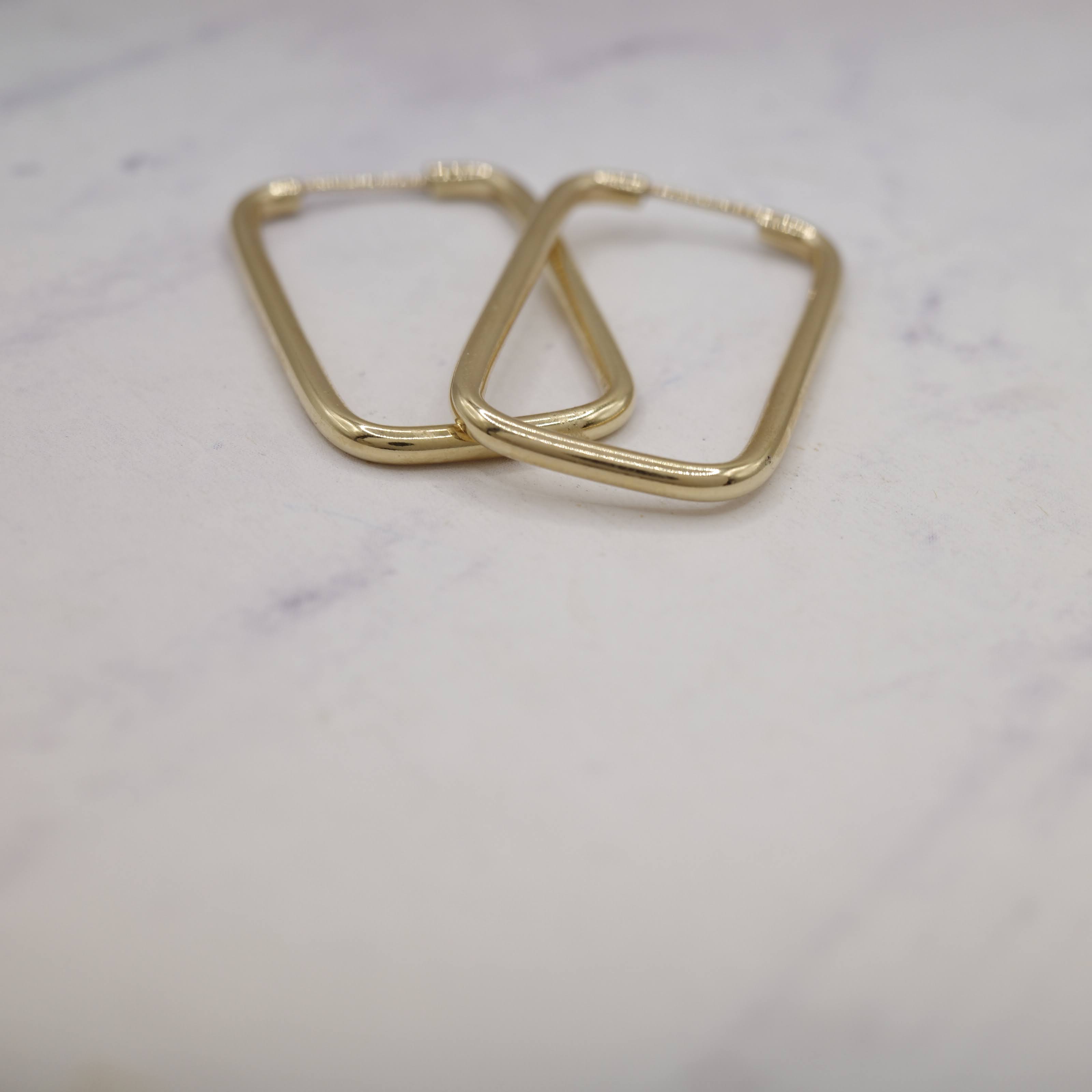 14kt yellow gold rectangular hoop earrings. Made in the United States. Please see additional information below.