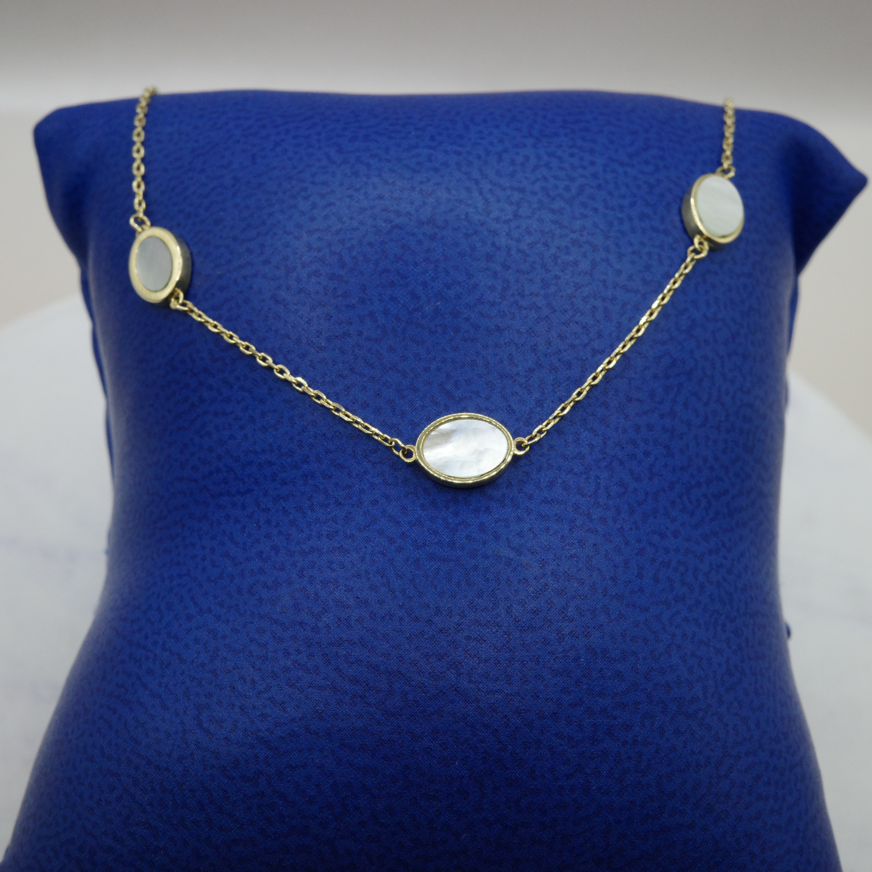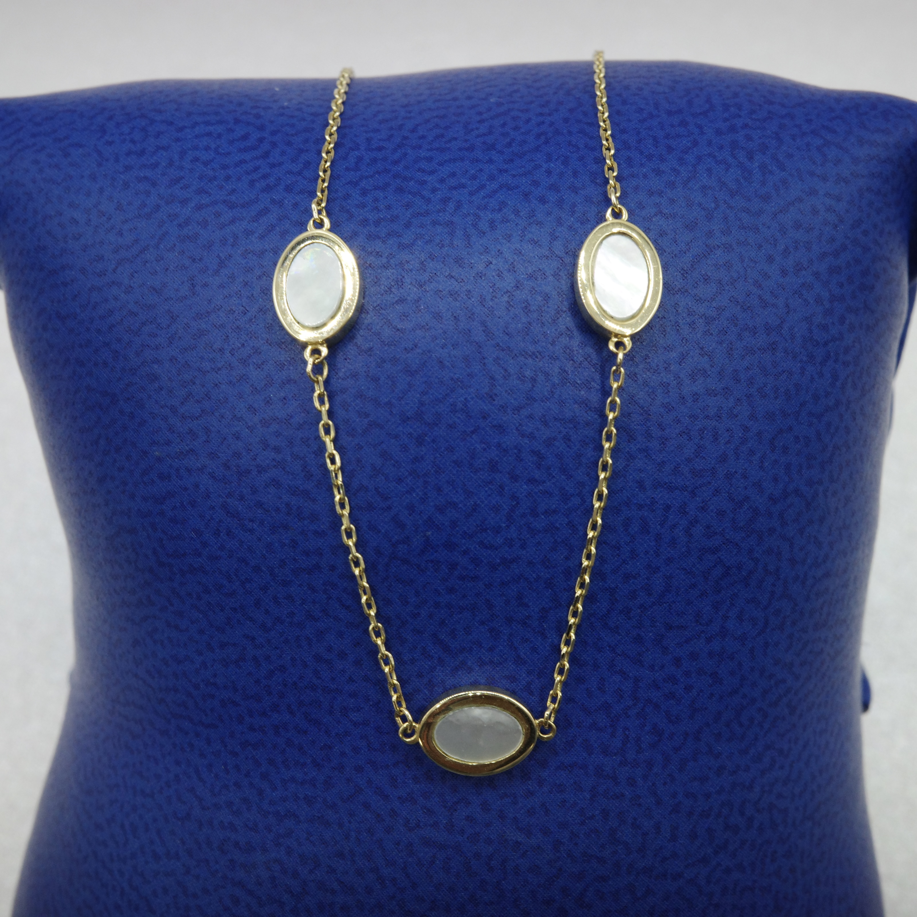 14kt yellow gold bracelet with 3 mother of pearl ovals