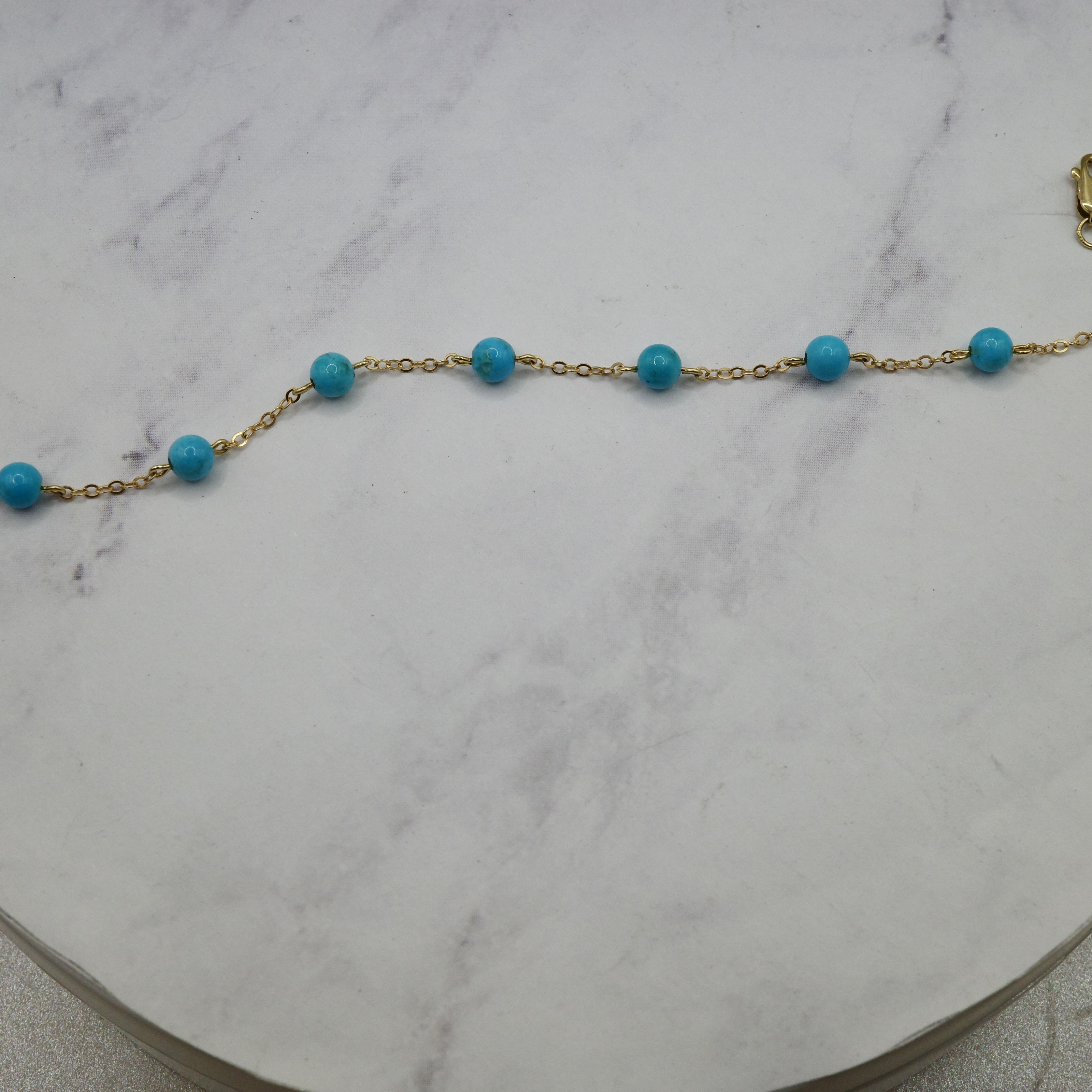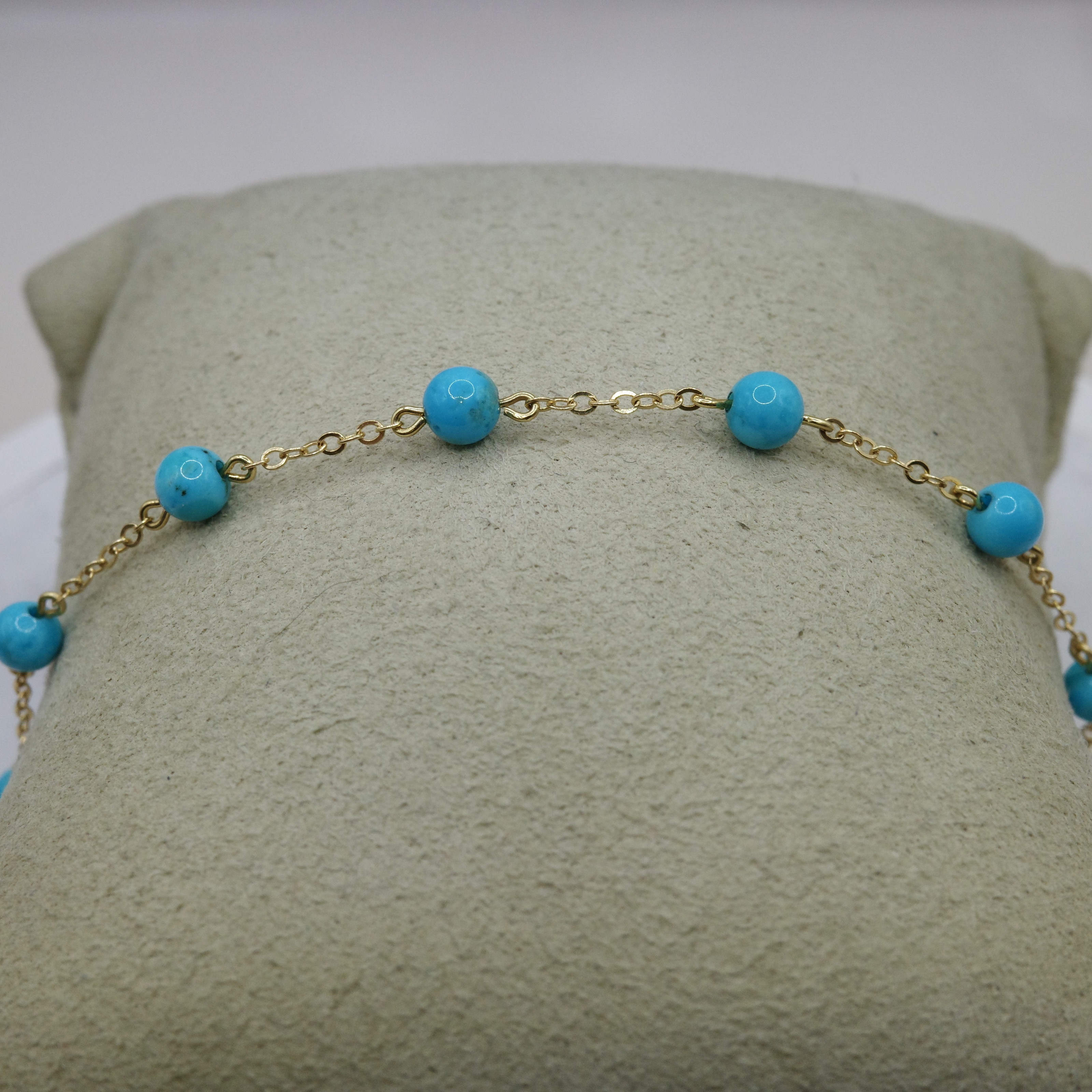 14kt Yellow Gold 7″ Bracelet with 9 4mm Turquoise Beads