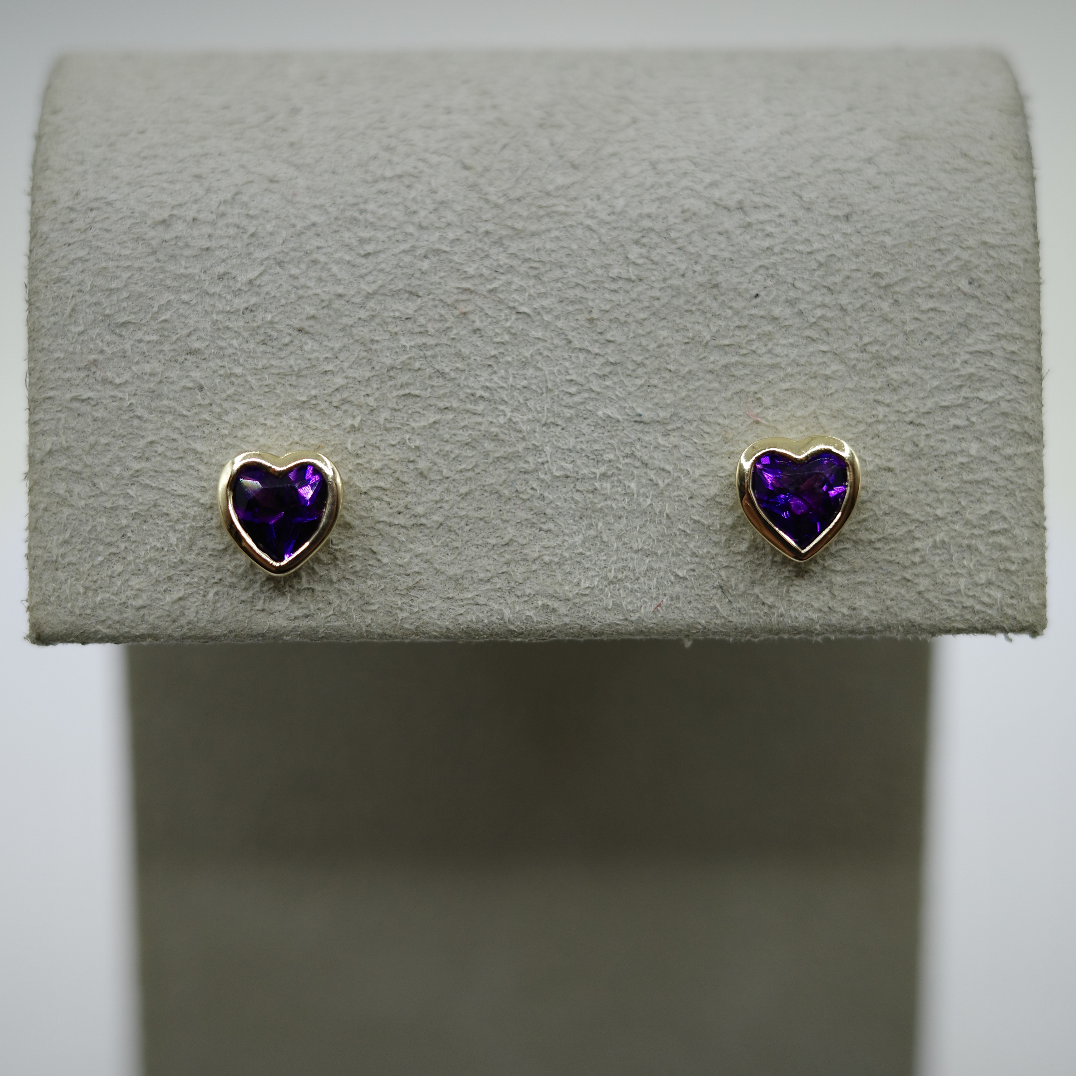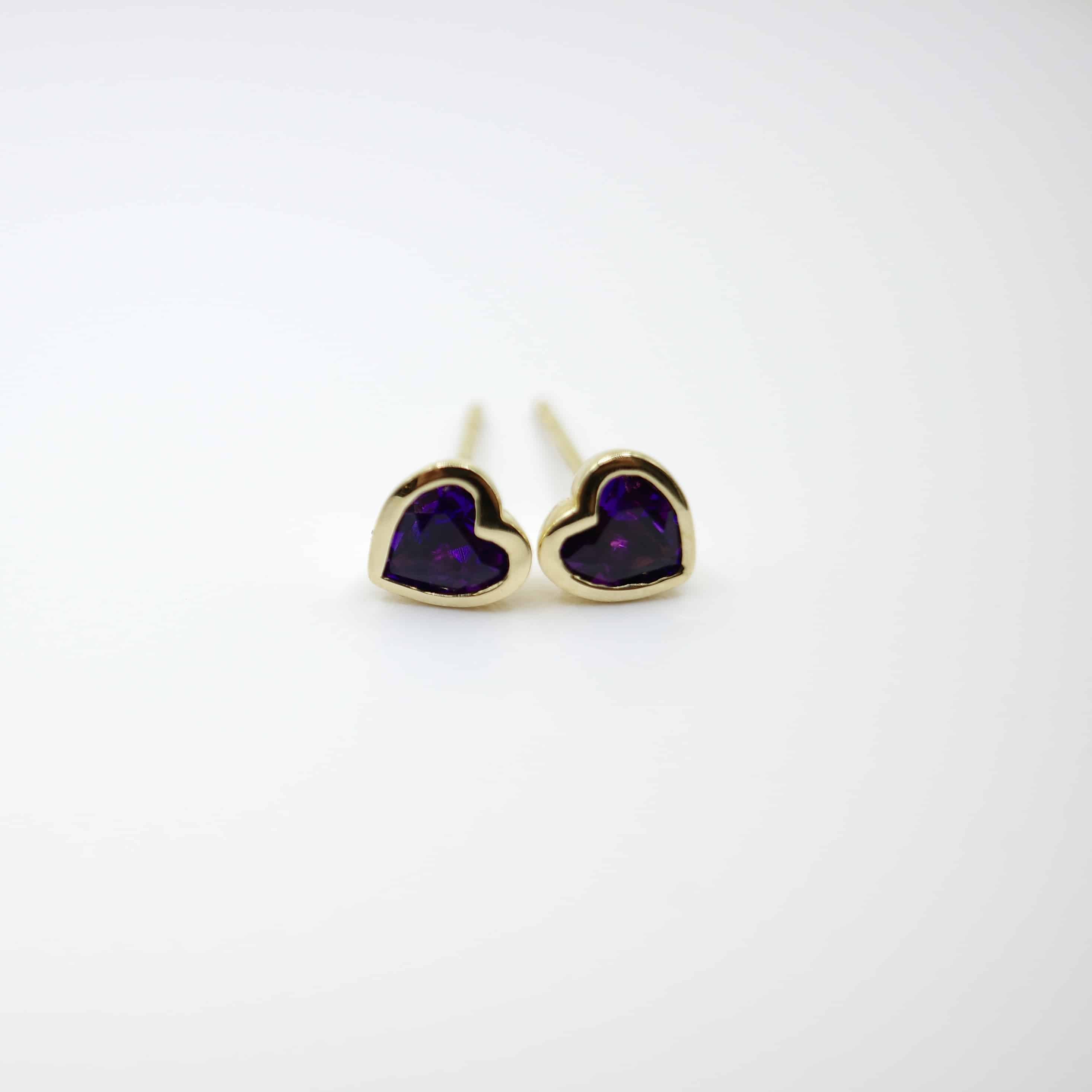 14kt yellow gold heart-shaped amethyst (0.8 ctw) stud earrings.
