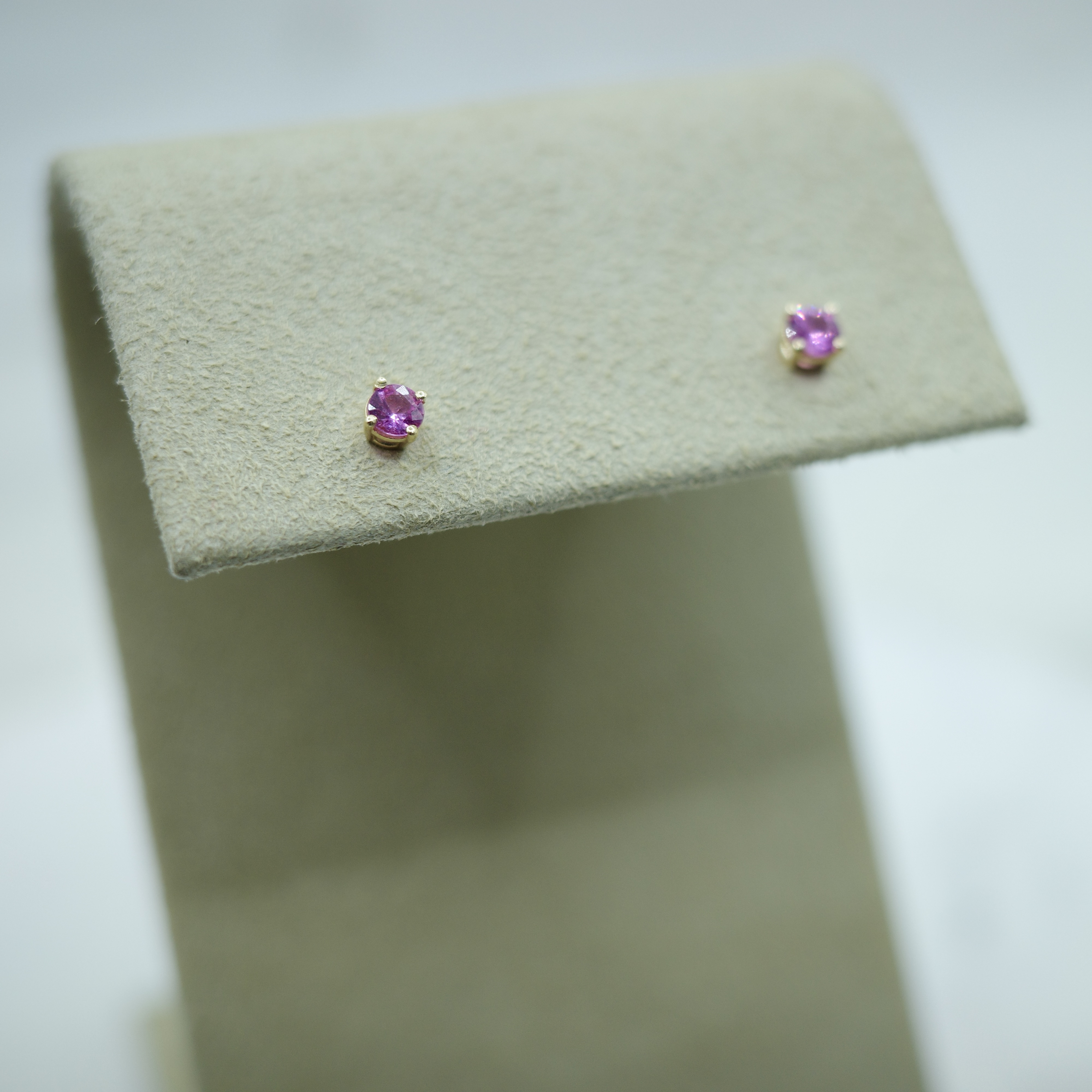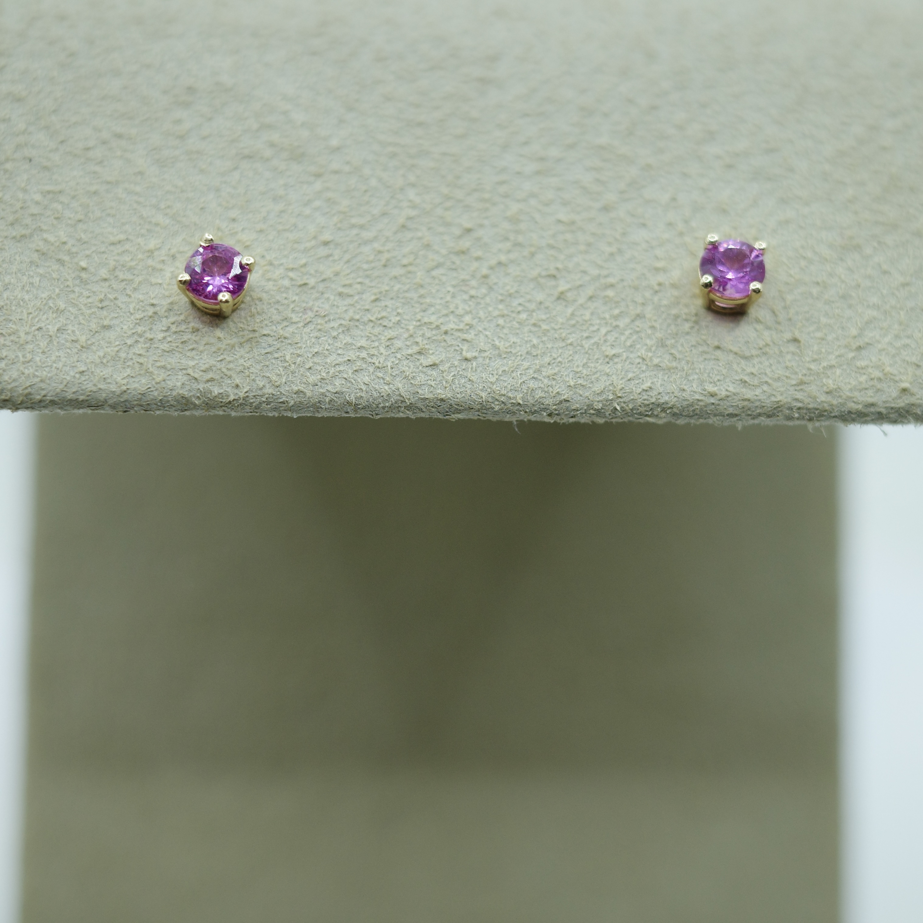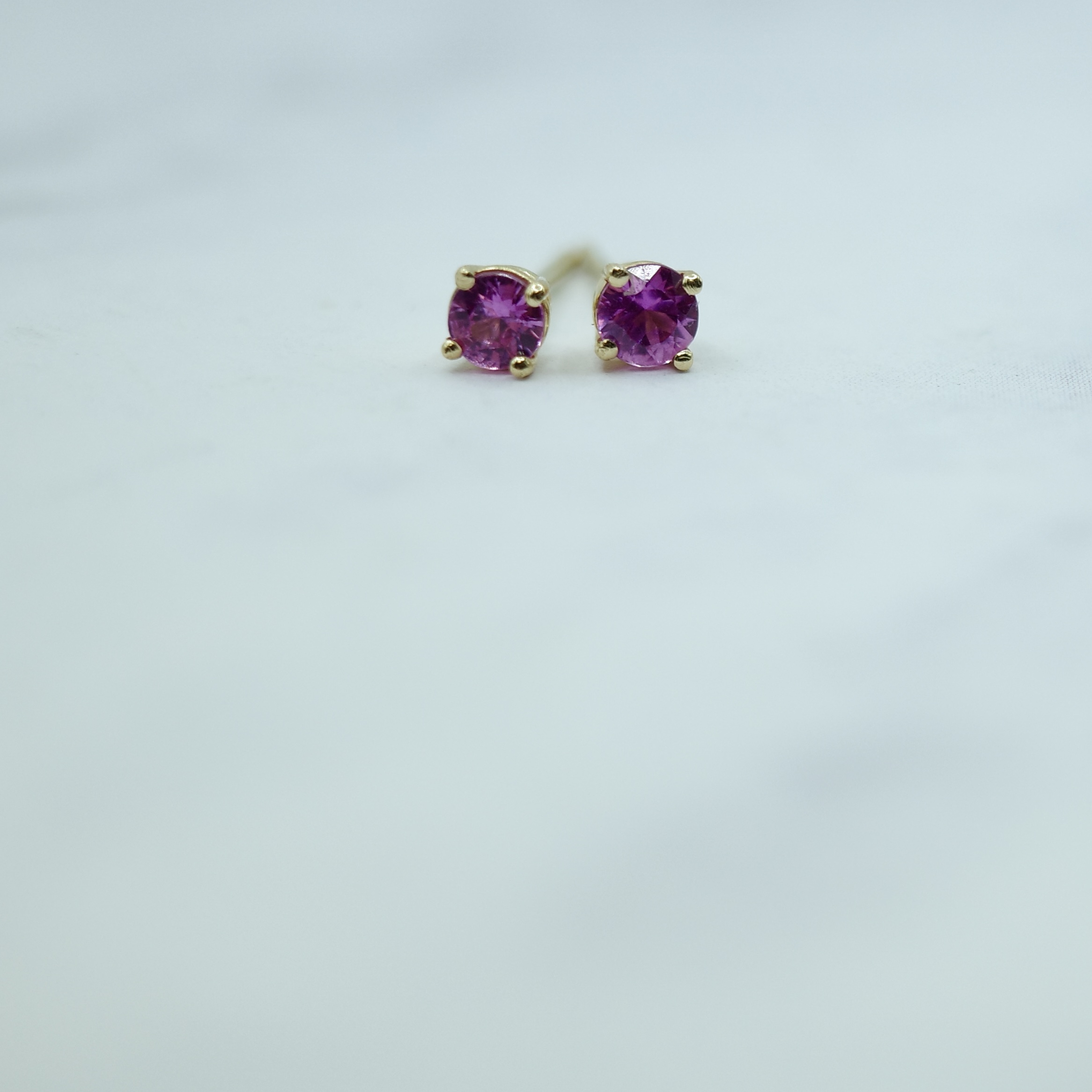 Elegant and subtle pink sapphire (0.40 ctw) stud earrings set in 14kt yellow gold.