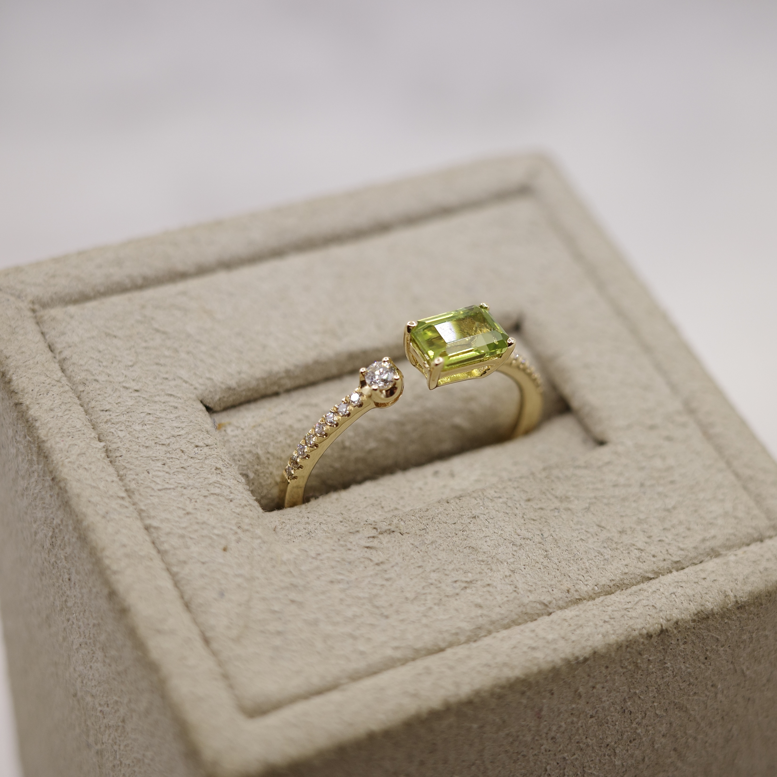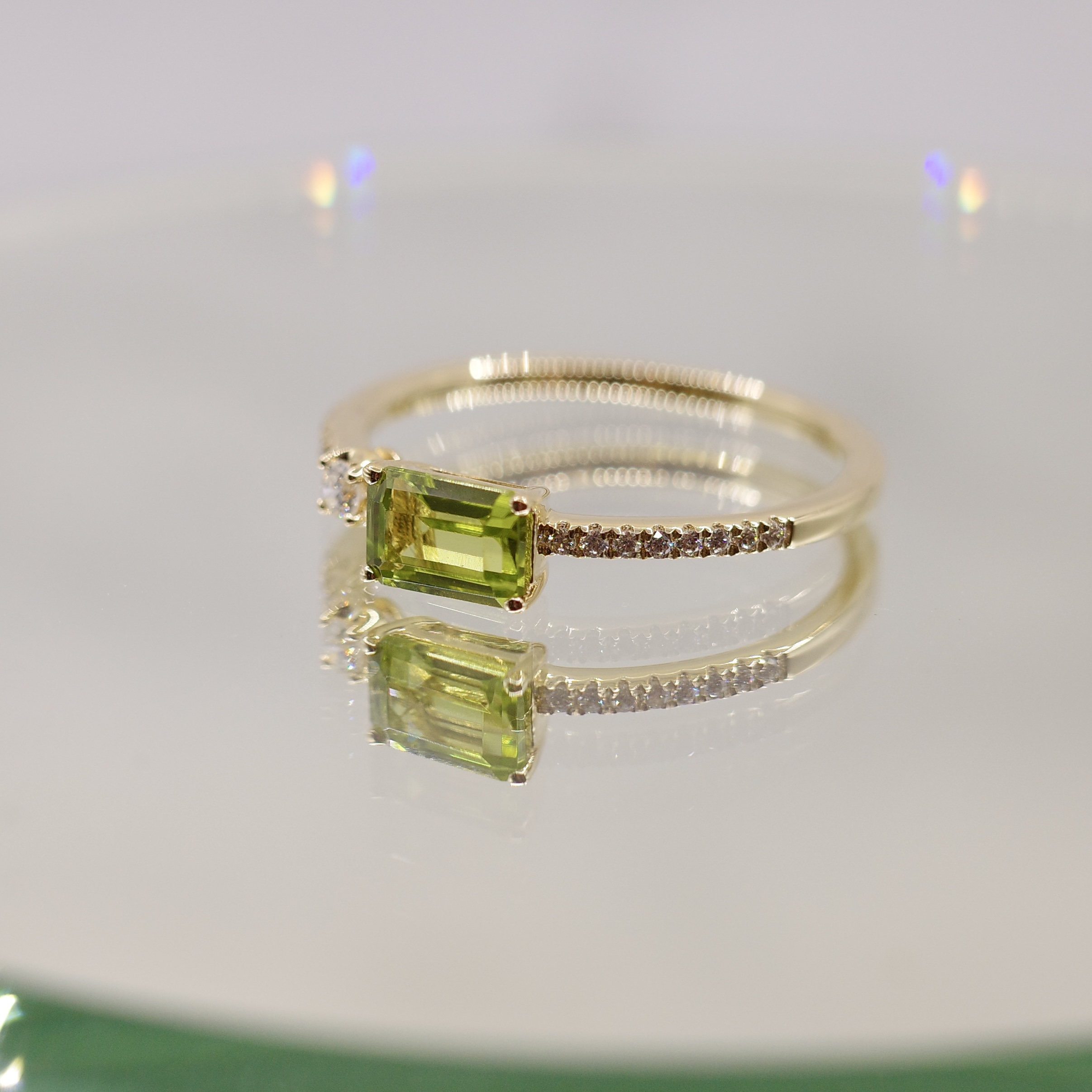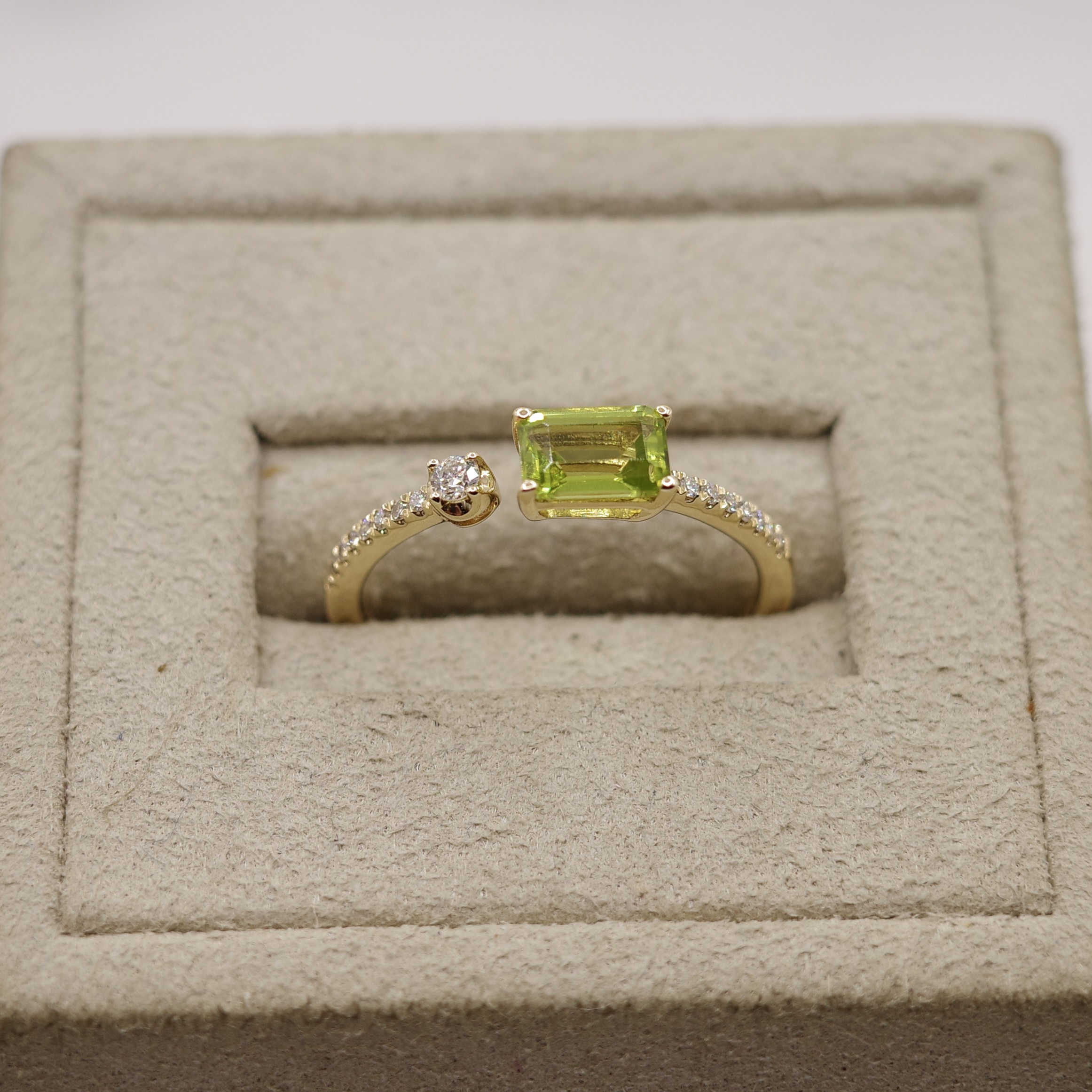 Peridot (0.62 ctw) and Diamond (0.1 ctw) Ring Set in 14kt Yellow Gold